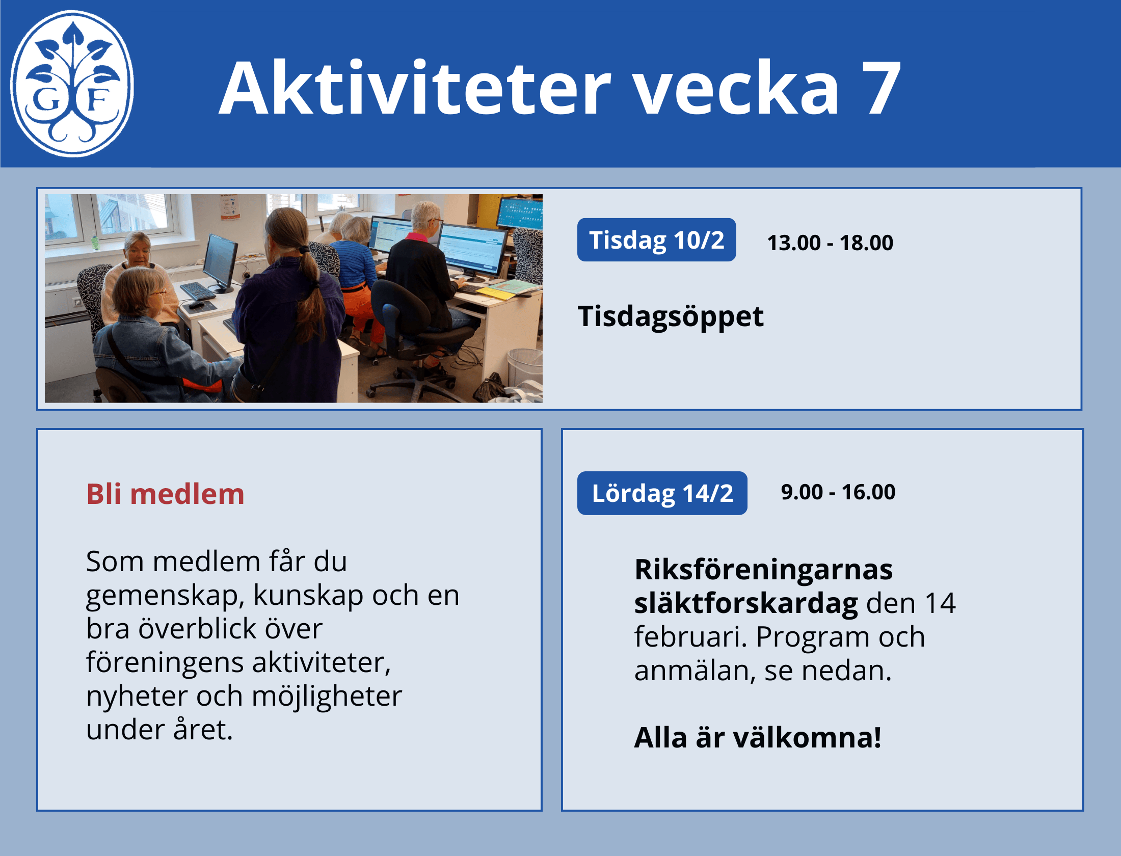 Varmt välkommen till en inspirerande eftermiddag fylld av släktforskarglädje och gemenskap!