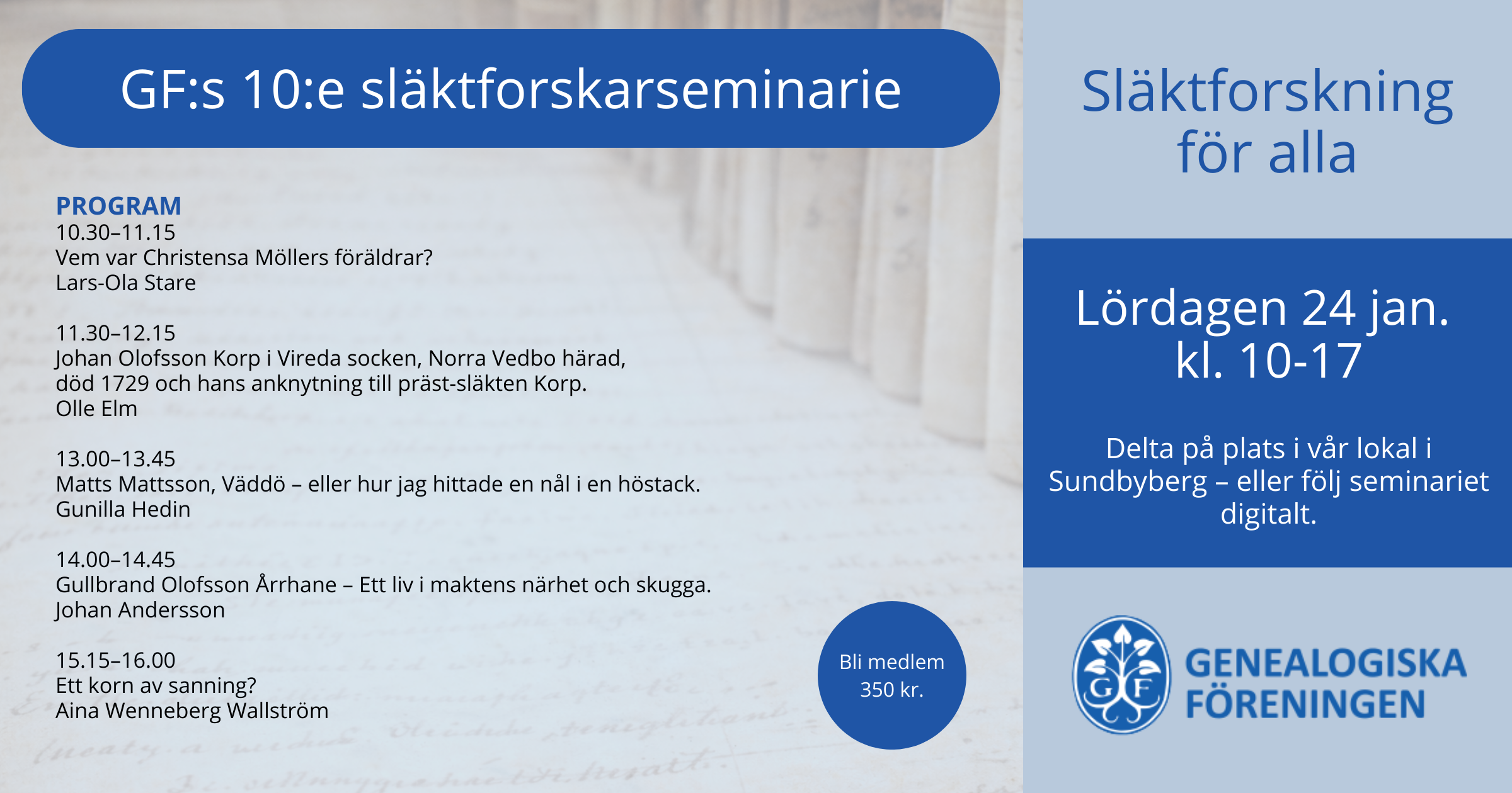 Filmade föredrag och släktforskarkaféer