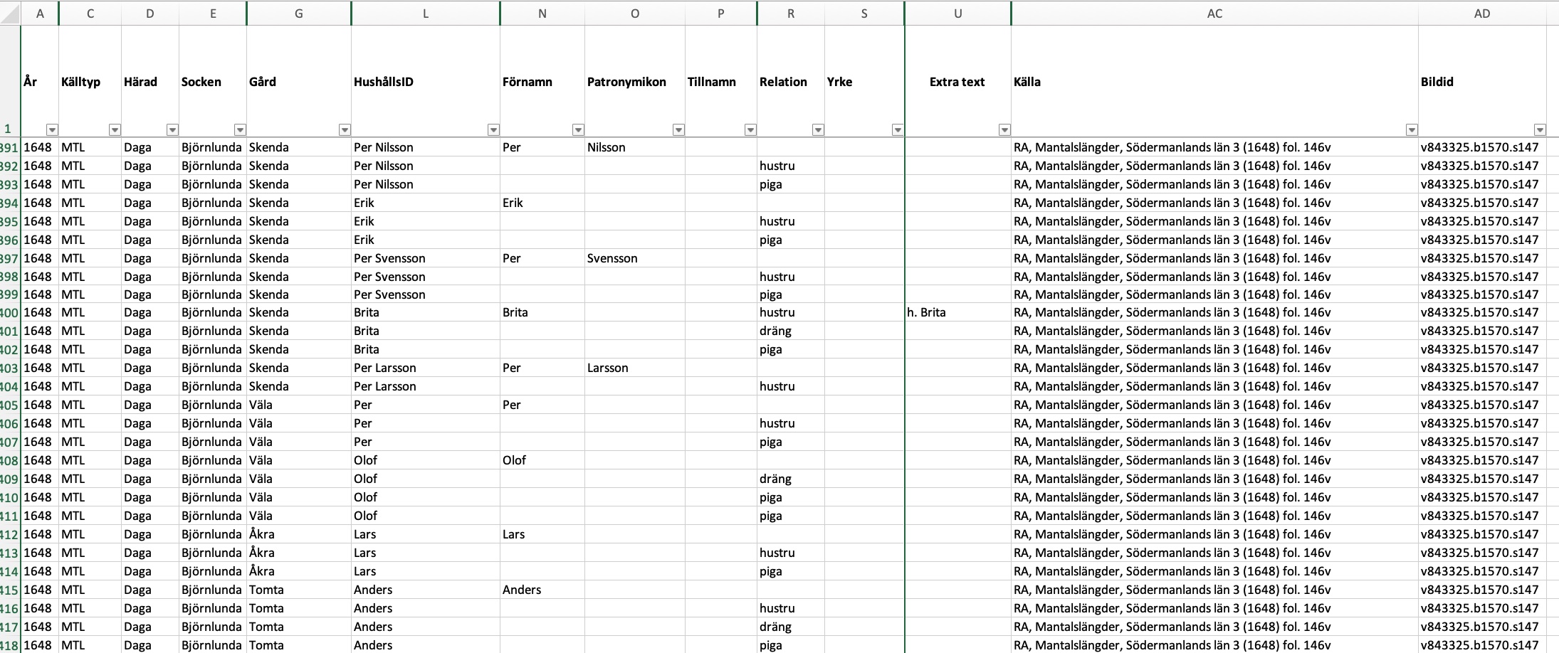 Mallen ska kunna fungera vid registrering av mantalslängder på olika geografiska platser och vid olika historiska tidpunkter samt kunna kombineras med motsvarande mallar för annat källmaterial (exempelvis jordeböcker och annat kameralt material, kyrkoräkenskaper, militära längder av olika slag etc).