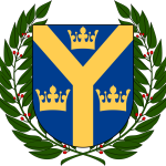Kommitténs vapen antaget 2006. Blasonering: I blått ett gaffelkors åtföljt av tre öppna kronor, allt av guld. Skölden omgiven av en grön lagerkrans. Licens: Creative Commons Attribution-Share Alike 2.5 Generic.